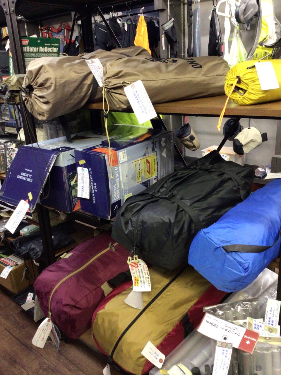 さて、見た目が若干マシになったテントコーナー。新たにテンマクデザインのサーカスTCコンフォートソロ+インナーテントというちょっとかさばる物が入ったので、ビジュアル的にはギリギリ寂しくなくなりましたw