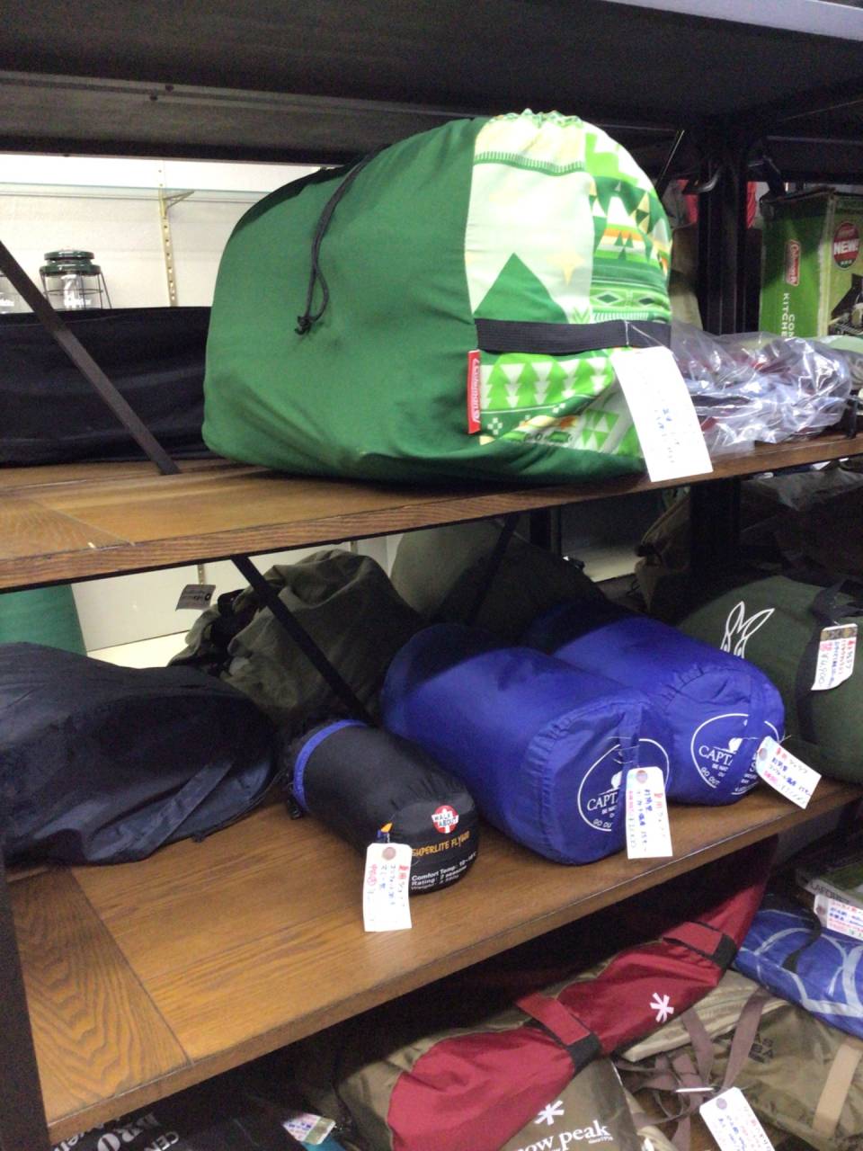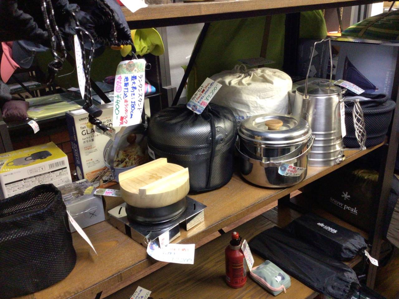 ざっくり在庫状況(11月4週目) 2025/11/25 おつかれさまですてっぷ! キャンプの準備シーズンも終わったのかご来店も一段落して静かになり、早くも年末モードになっている当店です! 今週はガソリンランタン(ノーススター2000)を1台お見送りしました。ガソリンランタンは全部メンテしているせいで愛着があるので、買取手が現れると嬉しさと寂しさがあります…! でもまた新たに1台入ってきましたw減らないw ノーススター2000、めちゃくちゃ明るいのでぜひ!! シュラフコーナー、相変わらず冬物がありません(;;) 一方、「冬物シュラフありますか?」とご来店されるお客様は毎日のようにいらっしゃるので、心苦しい限りです。 でもまぁ確かに冬物シュラフは1回買うとなかなか買い替えませんよねぇ。みなさん夏物は軽率に買うのか、やたら入って来るんですけど。 いつの間にかちょっと寂しいバーナー及びバーナー関連コーナー。 アルコールストーブ、固形燃料台、ガソリンツーバーナーはあり、バリエーションはそれなりですがガスバーナーが無いのはちょっと寂しいです。 クッカーコーナー。相変わらずデカい重い系は充実!軽い系/ソロ用が少ないです。 今まではソロ用クッカーはコンスタントに入って来ていたんですが、なんだか今年の後半は流れが変わったなぁという印象です。 そろそろ11月も終わりですね!年越しの準備をしないと… 明日・明後日(水曜・木曜)は定休日です! ではまた金曜日(^^)
