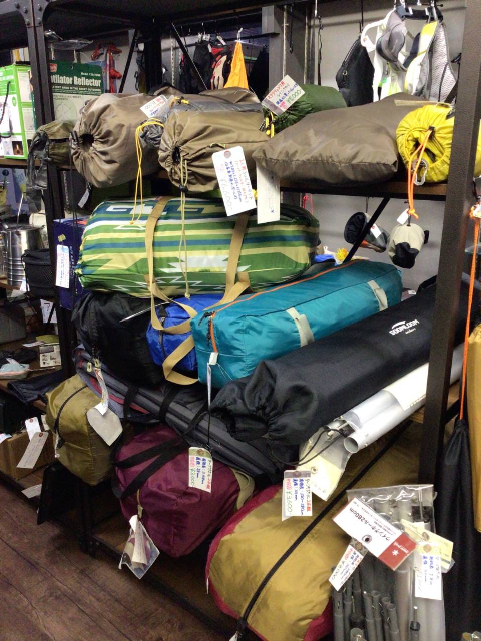 ざっくり在庫状況(12月2週目) 2025/12/09 おつかれさまですてっぷ! 12月に入り、一気に査定買取が立て込んでいます。さばききれない。ほんとこの仕入れの不安定さはどうしようもないですね…(^^; まず見た目に一番変化があったシュラフコーナー!みっちり~~~。 まぁ個数的には3つ増えただけなんですけど。3つとも嵩張るんですよねぇ。 こちらもずいぶん増えたイスコーナー! 良いやつだとogawaのツーアングルチェアLなんか入ってきています。 棚4段に収まりきらなかった頃と比べるとまだまだですが、棚2段にはそろそろ入りきらなくなってきました。 こちらも賑やかになって来ています!テントコーナー。 ステラリッジ2が入ってきているんですけど、誰かお探しだったりしません? あとなぜかステラリッジ1のフライシートだけとかもあります。 なおテントは近日中にもう2つくらい増えます…。 ランタンコーナーも一定して充実しているんですけど、何かこう…メインになれない小物ばかりがうじゃうじゃしています(^^; 主役にはなれない慎ましいランタン、必要かと言われるとそこまで必要ではないランタン、欲しくありませんか…? バーナー類は、SOTOのST-330と、コールマンの508Aが新たに加わったので、寂しいながらも見栄えが良くなりました。やはり常にガスとガソリンの2つは置いておきたいですね。 なおどっちもほぼ未使用です! ということで、ずいぶん商品が充実してきた今週ですが、今一番寂しいのは30~40Lくらいのザックコーナー。 個人的にはザックコーナーはすごく大事なので充実させておきたいんですが…。欲しい物に限って来ない(><) 60L以上はまぁまぁあるんですけどね…。 明日・明後日(水曜・木曜)は定休日です! ではまた金曜日(^^)